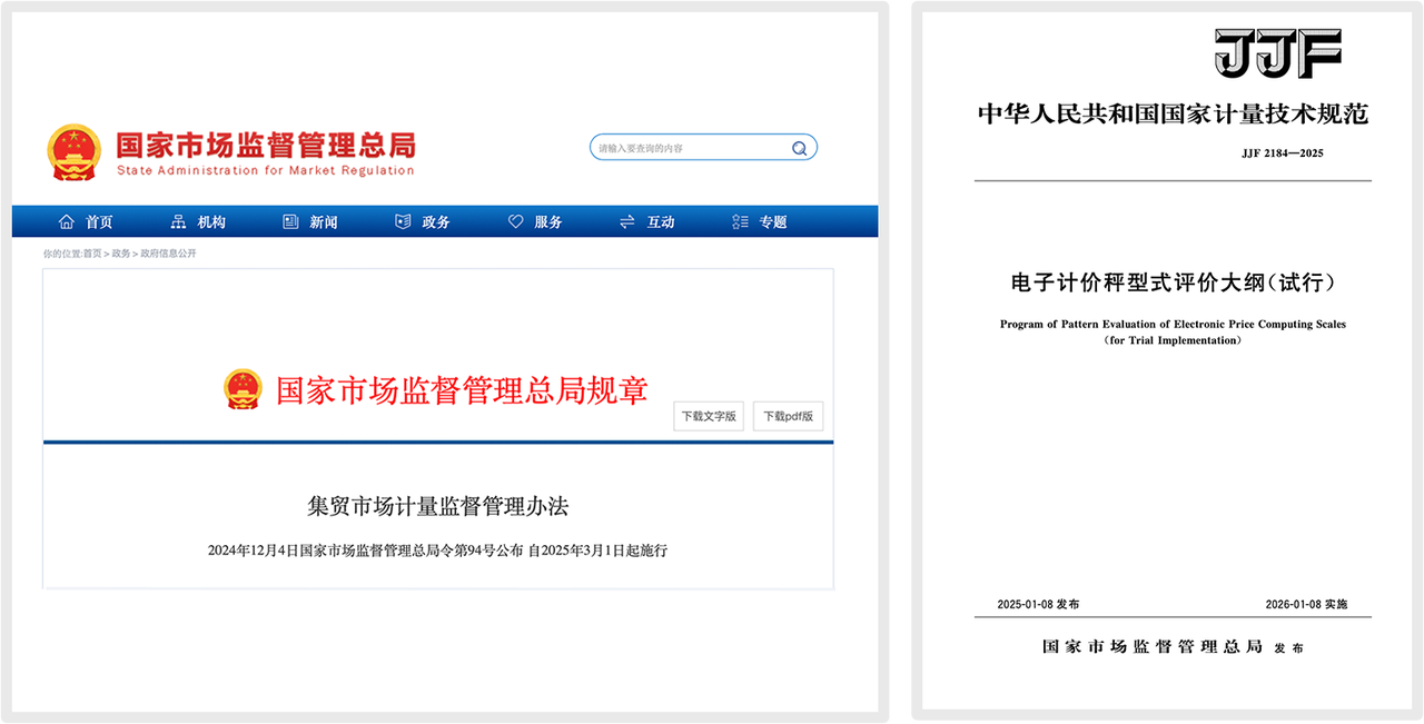 為應(yīng)對農(nóng)貿(mào)市場存在的計(jì)量作弊問題,國家市場監(jiān)督管理總局近期出臺了一系列強(qiáng)制性法規(guī)與技術(shù)規(guī)范,標(biāo)志著行業(yè)將進(jìn)入一個全新的、以技術(shù)防作弊為核心的合規(guī)時代。本文將解析《集貿(mào)市場計(jì)量監(jiān)督管理辦法》(總局令第94號)及《電子計(jì)價秤型式評價大綱(試行)》(JJF 2184-2025)的核心要求,這并非一次簡單的規(guī)則重申,而是電子計(jì)價秤產(chǎn)品本身發(fā)起的一場產(chǎn)業(yè)升級。通過設(shè)定技術(shù)要求與明確的法律時限,系統(tǒng)性地重塑產(chǎn)品的設(shè)計(jì)邏輯與生產(chǎn)標(biāo)準(zhǔn)。